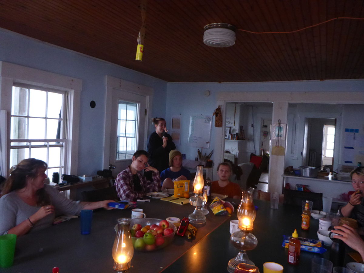 - Dinner time at Mount Desert Rock’s research station, July 2021. Lanterns are used to minimize draining the solar power stores.