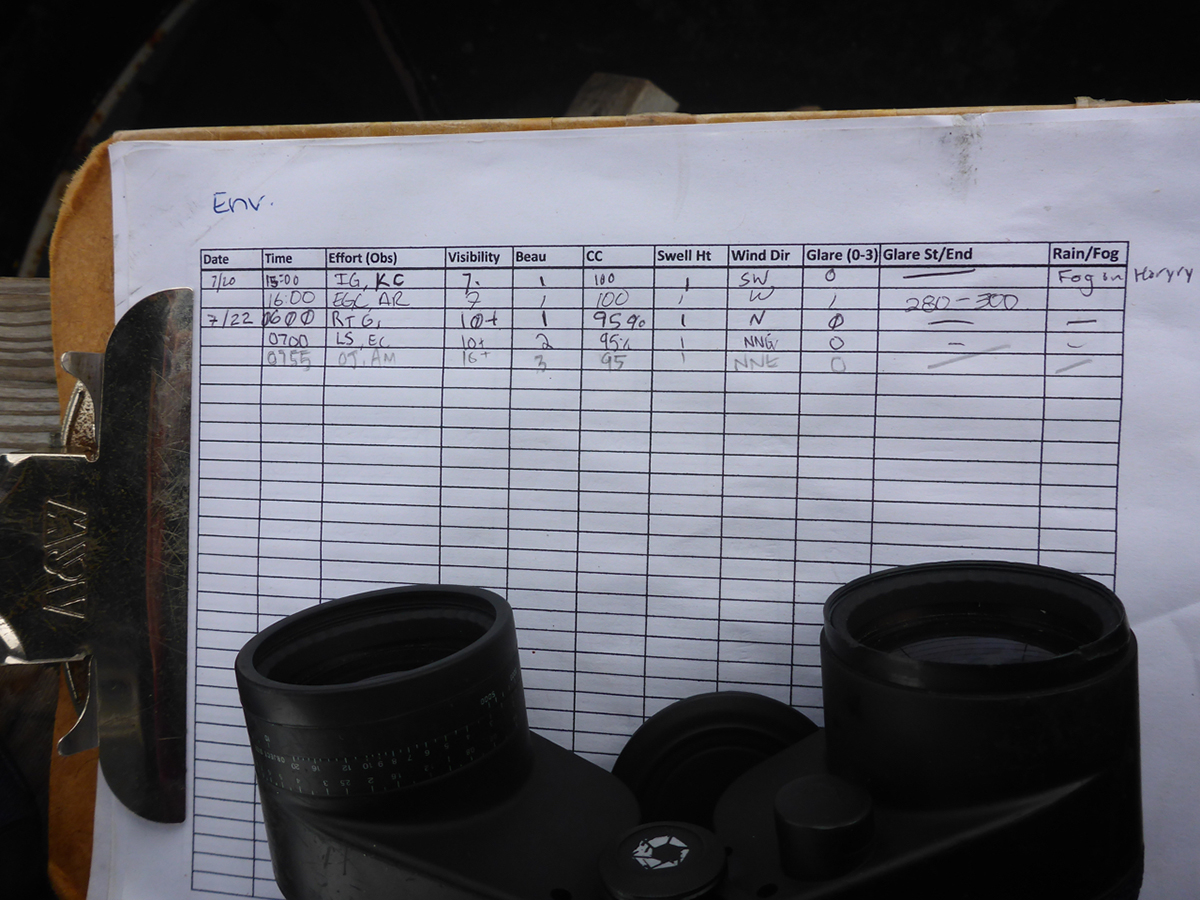 - The student researchers rotate through “Tower watch” shifts during which they keep detailed records of all sightings, including species of whales and sharks, passing fishing, cargo or recreational vessels, and environmental factors such as visibility and cloud cover.